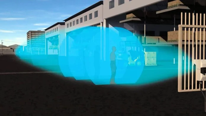 A: Microwave detection zones are more or less symmetrical, though something to bear in mind when planning microwave sensor installations is that while theoretical detection patterns are symmetrical, in reality they will be distorted by ground, walls, buildings and other objects adjacent to the target area. Typically, microwave beams are as wide as they are high towards the centre, which is halfway between transmitter and receiver. The further transmitter and receiver are apart, the wider the pattern will be.