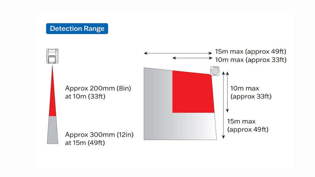 Detection is achieved in as little as 100 milliseconds and not impacted by variations in ambient light or temperature, including total darkness. The sensor can be mounted horizontally to protect skylights or ceilings or vertically to protect doors, walls, and confined access zones. It supports wall, ceiling, and bracket mounting using an A-directional mounting plate compatible with junction boxes and tight spaces.