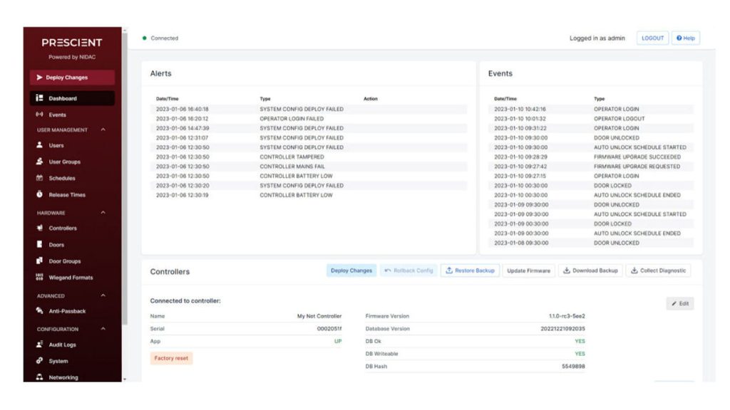 Once a Prescient site is associated with an installer account, it becomes accessible through the Gravity cloud interface. This allows installers to commission, configure, and manage customer sites remotely via a streamlined dashboard that’s gaining recognition for its clean UI and intuitive design. Importantly, Gravity mirrors the DN4 user interface and supports full control of access and alarm functions through a secure web portal.