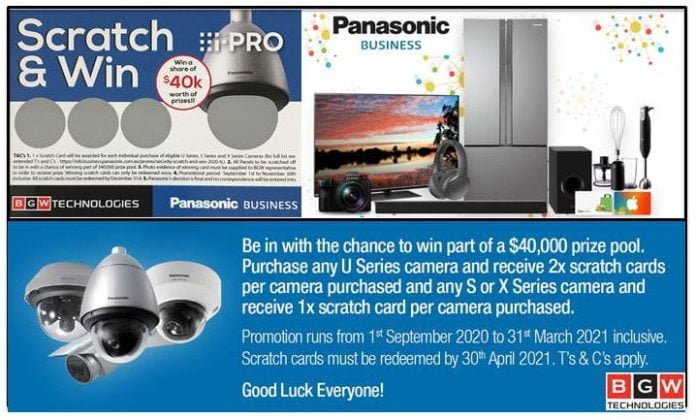 Distributed in Australia by BGW Technologies, security industry trade customers who buy Panasonic i-Pro S or X cameras during the period will receive a scratch & win card for each camera purchased and will receive 2 scratch & win cards for each Panasonic U-Series camera purchased during the period.