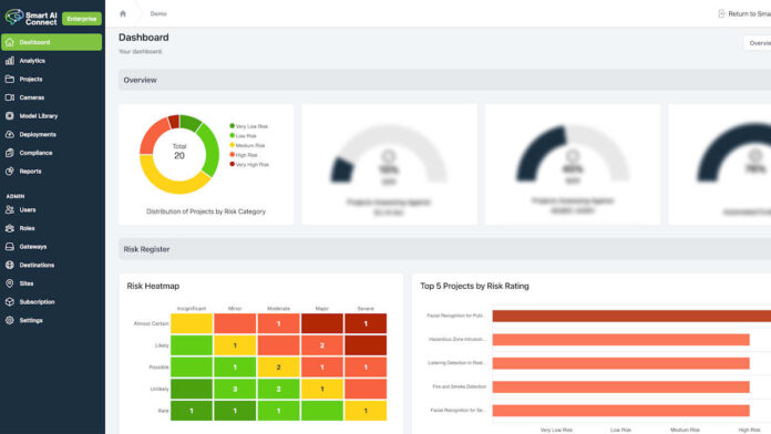 With the SmartAIConnect Responsible AI Framework, users can create AI projects tailored to their needs, selecting specific cameras, AI models, and data destinations. The framework offers a compliance score, reflecting an organisation’s alignment with AI guidelines and the health of its AI camera network.