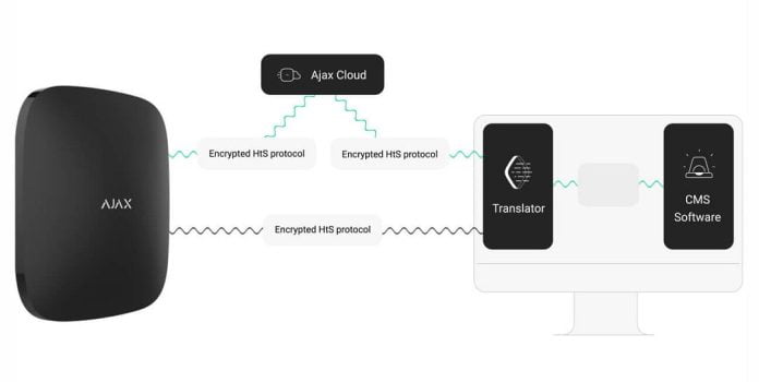 “Messages generated by suitably configured Ajax hubs are received by the Ajax Translator, where they are decrypted and converted into standardized protocol messages that are then passed directly into CAMS.