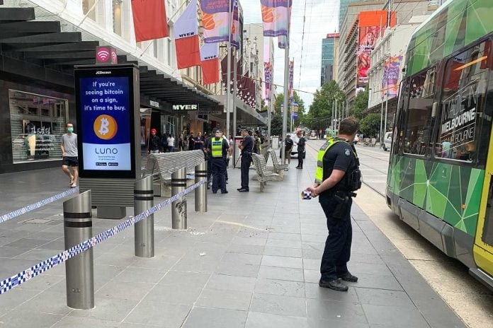 Assistant Commissioner Luke Cornelius said the police tried to pull over a Mitsubishi Lancer on Swanston Street after discovering that the car’s licence plates belonged to a different car and being blocked by trams it drove down the mall before crashing while attempting to turn.